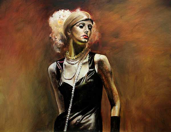 Featuring a mannequin dressed in showy clothing against a neutral background, this new painting is similar in composition to Store-Window Madonna.